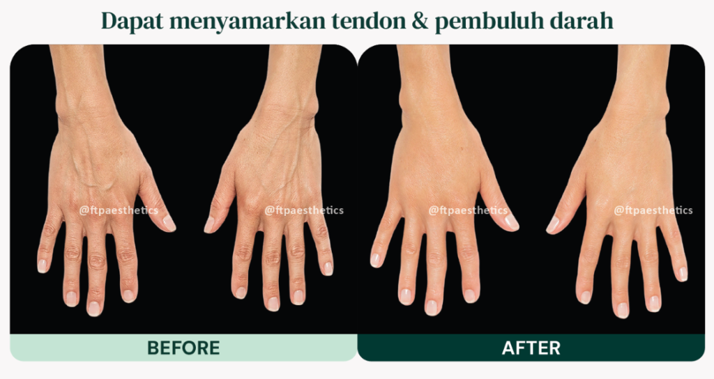 ✅ Punggung tangan (menyamarkan tendon & pembuluh darah)
